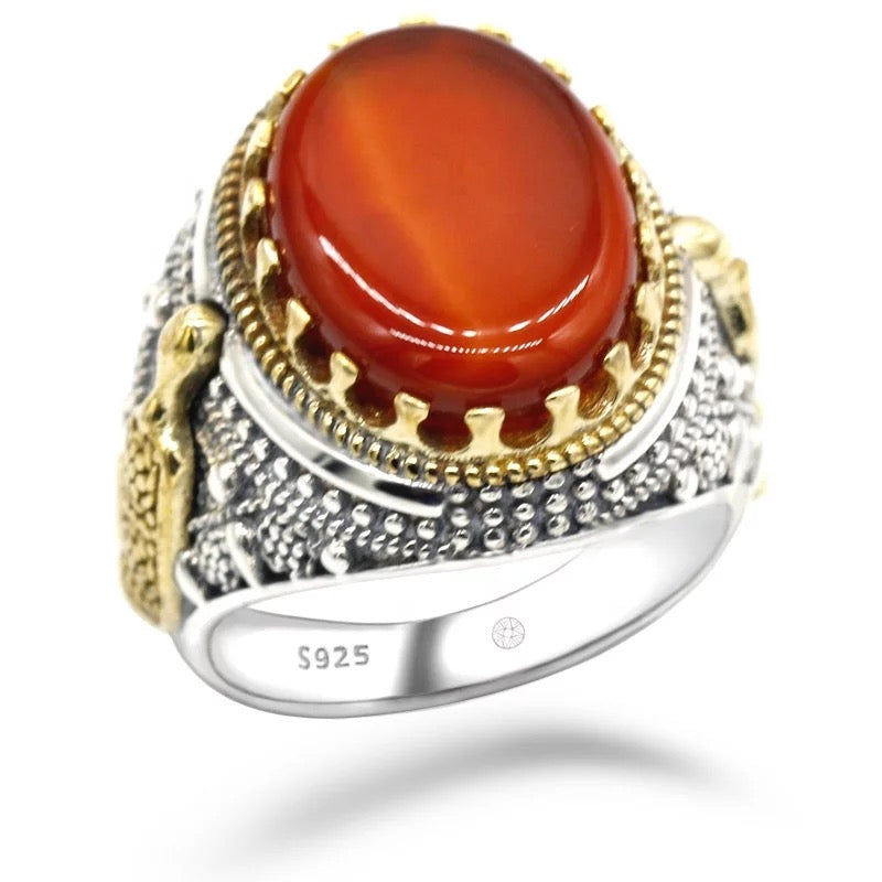 MOST SOUGHT AFTER LIVER COLORED YEMENI AQEEQ SET IN BEAUTIFULLY HAND CRAFTED TURKISH DESIGN IN 925...